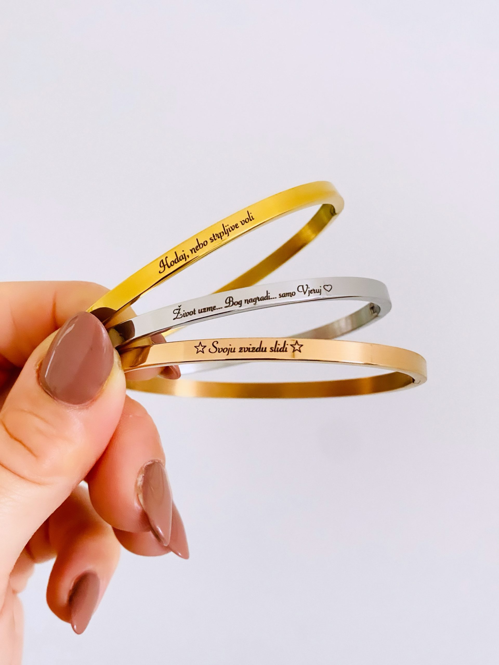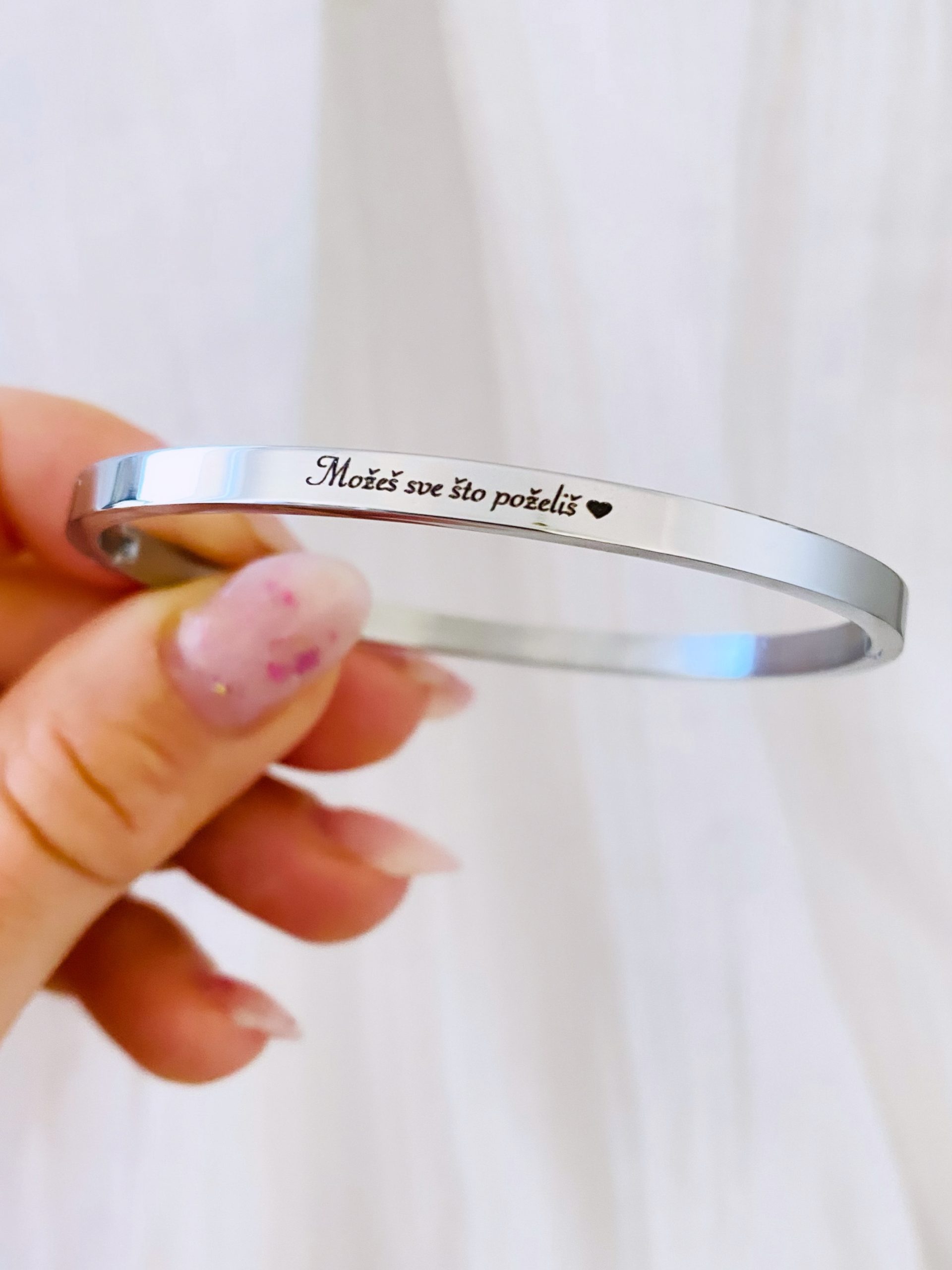 Obostrana gravura nije moguća. Gravira se samo na vanjski dio narukvice.